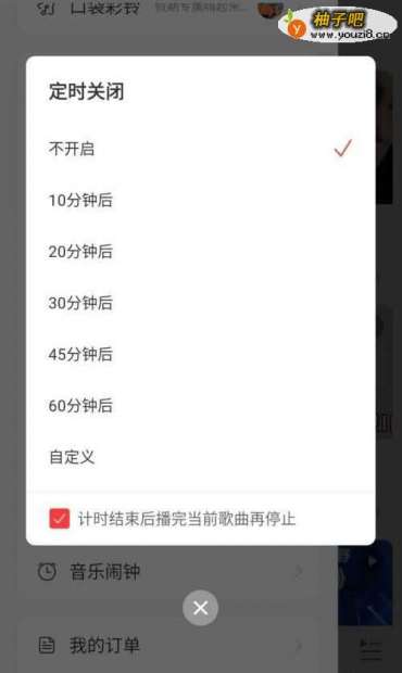 5图中,还可以自定义选择时间,并选择是否播放当前歌曲,根据自己需要进行选择暗荡。