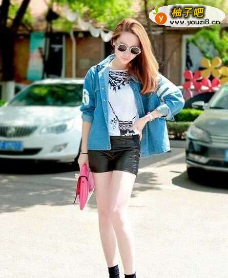 4非常帅气的一身装扮,铆钉毛边破洞都是今年女装牛仔流行的元素,高腰短款T恤+短裤,更显高显瘦又时尚,美美的衣服随心搭。