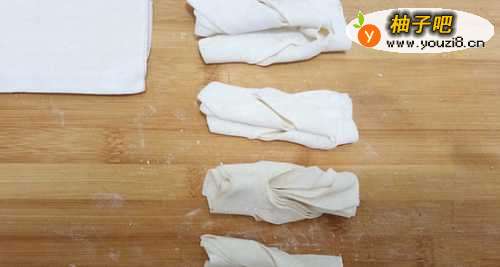 1、首先,我们准备好适量的云吞皮;2、然后,将云吞皮两张或三张叠在一起,用刀在划三刀;3、接下来,从一端提起,穿过中间的划口;4、起锅烧油,油六成热,放入生坯,中小火炸制;5、最后,大火炸至金黄酥脆捞出控油即可。