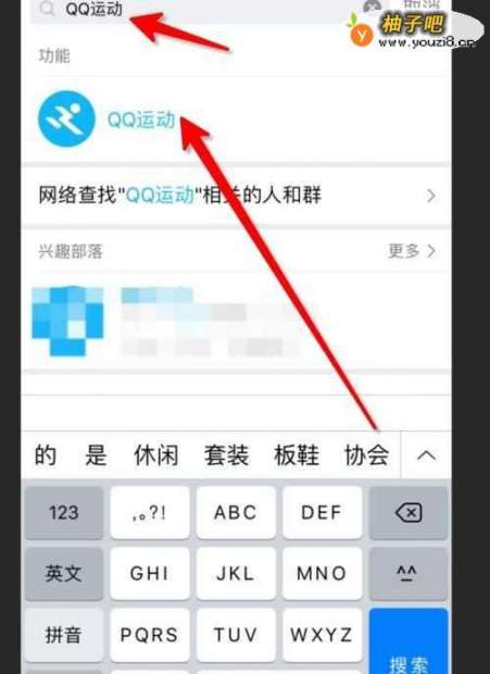 3然后在搜索栏输入【QQ运动】,再点击打开搜索出来的结果。