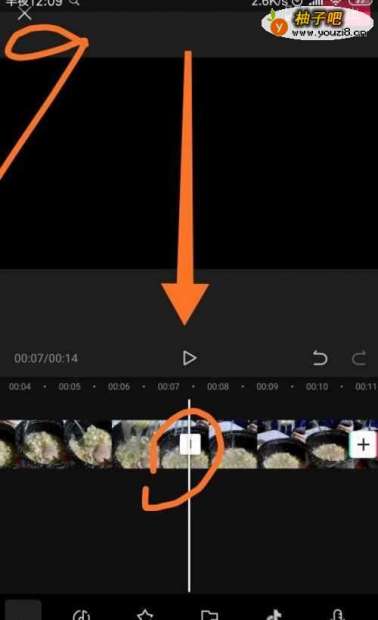 6点击一下视频下方的视频条,然后再点击页面下方的“分割”标志。