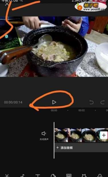 5点击页面中间的三角形标志,进行视频的播放,在需要拆分的地方点击再一下三角形标志,视频就会停止在当前位置。