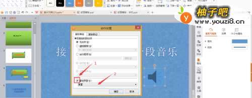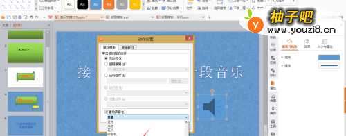 8点击声音动作按钮,根据个人喜好,在右侧的“属性”工具栏中设置动作按钮的属性,然后保存文档就可以啦!