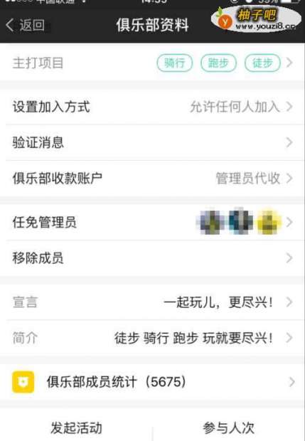 4创建好之后,在俱乐部的右上角有【管理】,可以设置会员加入的方式、俱乐部收款账户,并可以任免副会长、管理员、移除成员,对成员有一个很好的管理。