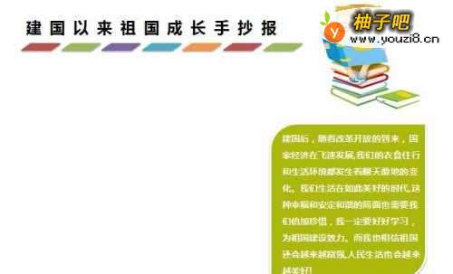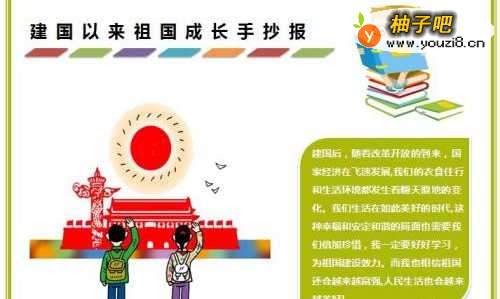 2在【建国以来祖国成长手抄报】标题的右侧处,画出画面丰富内容,如下图所示。