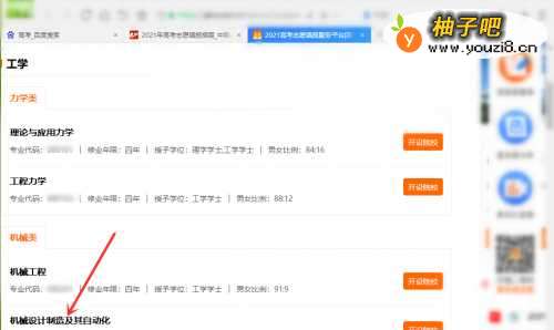 5选择查看的专业,例如点击【机械设计制造及其自动化】。