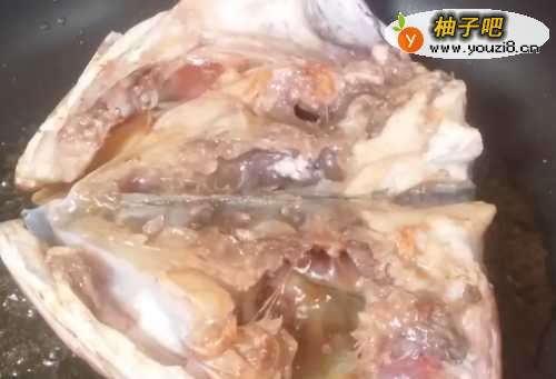 5热锅加油,把鱼头煎至两面金黄