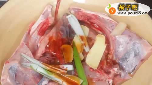 2加入葱姜蒜,生抽和料酒腌制30min