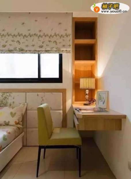 小碎花的自然清新,让整个空间增色不少。这个方案适合家有小女的朋友,从窗帘到软包,再到实用简洁的书柜和书桌,不仅简约实用,也不会因孩子的成长而显得过时。