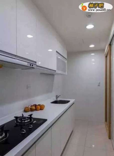对于一些空间较小,而且采光不太好的厨房,采用下图这种纯白,清爽的橱柜无疑是不二选择。门板的简洁配上纯白,不仅会让空间显得更大,也在弥补了光线不足的同时,给人与清爽的美感。