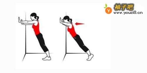 这是简单的做法,首先找到一面墙,身子离墙一个手的距离,双手贴到墙双脚有并拢及分开两种,然后脚伸直,不要弯曲,俯卧撑方式,重心在上体,手臂上。