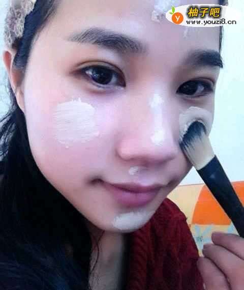 3把BB箱点在脸部,可以用刷子晕开,或者用手指轻轻推开,让BB箱与皮肤贴合。