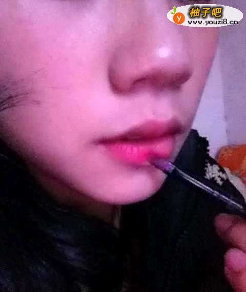 16还有一步就是嘴唇了,第一要用润唇膏带过,第二用唇彩轻轻涂过。