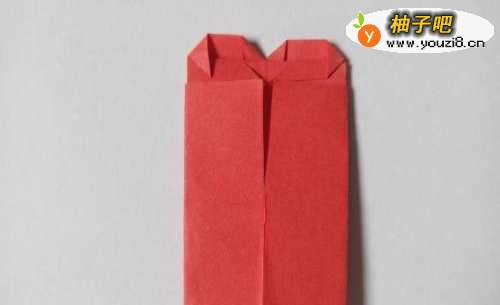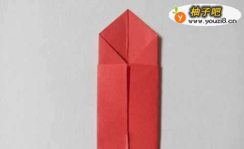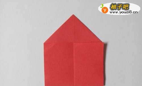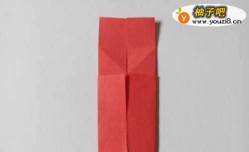 6将上面展开,沿着折痕折叠成图二中的样子。