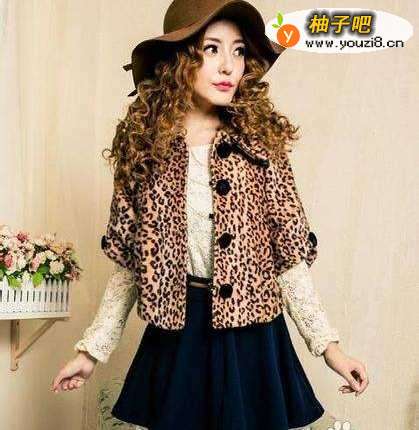 3豹纹无疑是性感狂野的,但是经过聪明的设计师们改造也可以呈现出娇小可爱的味道。短款七分袖的娃娃衫版型就让这件豹纹毛呢外套把甜美与性感兼具,翻领简洁流畅中和了野性气息。搭配蕾丝打底衫和层叠半身裙,立即展现一个森林小公主形象。