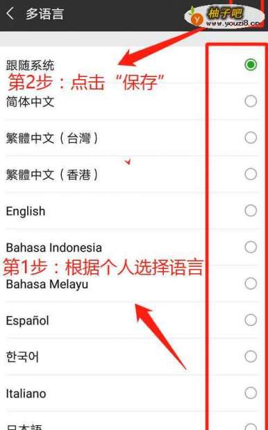 6在“多语言”窗口中,根据个人需要选择需要修改的语言,然后单击右上方的“ 保存"按钮。