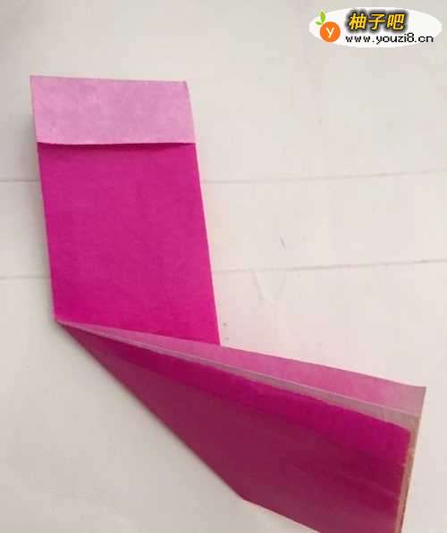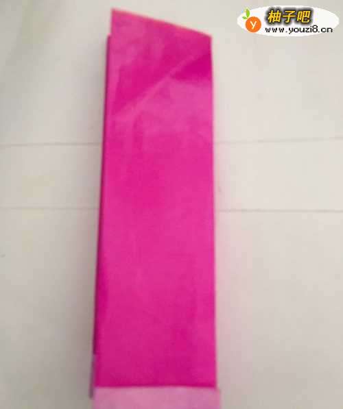 2第二步 对边折叠完之后 竖起来取开 左右翻过来 然后从下向上折叠1厘米左右