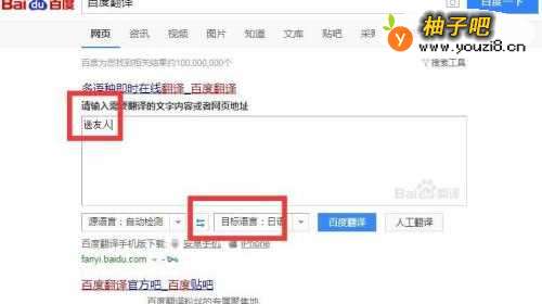 4此时我们在网页的第一项找到百度翻译,输入“送友人”,如图