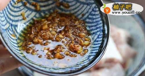4热锅少油,把花椒、蒜末和姜末放下去炒香,再放黄酒、生抽、盐、糖,煮开关火