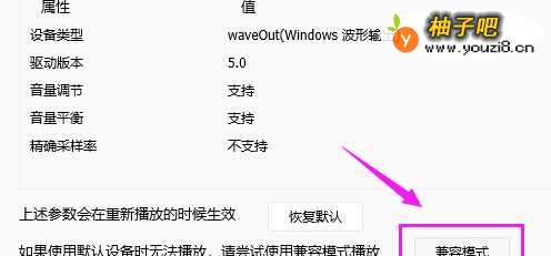 使用默认设备时无法播放该怎么办,鼠标点下它,如图。