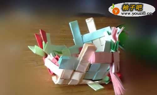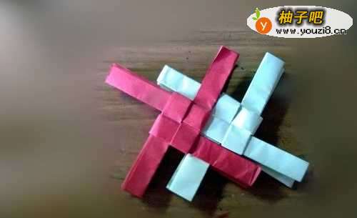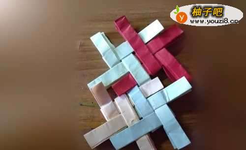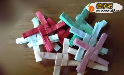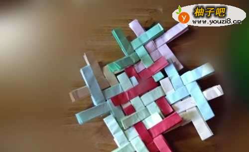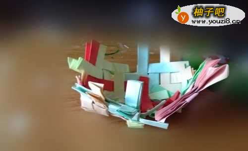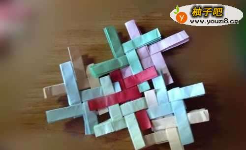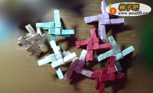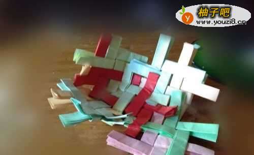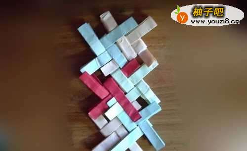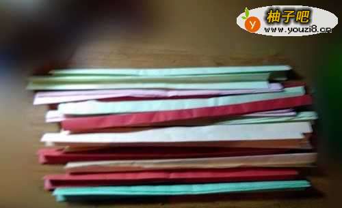 5那纸条对折,相同颜色的每四根为一组,交替的插好。就像这样。