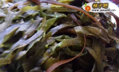 将干的海带丝拉开,取出一部分(约3两),然后泡水盆中半小时,发开后,冲洗几遍,再用开水焯一焯,捞出。