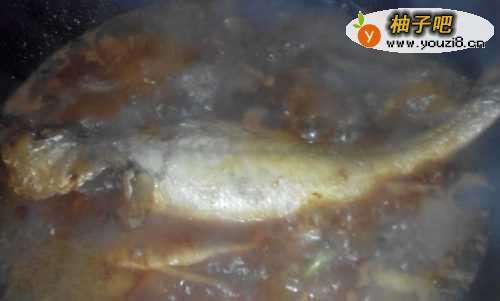 5加入适量清水,炖3分钟左右。让鱼肉与佐料香味进一步融合。