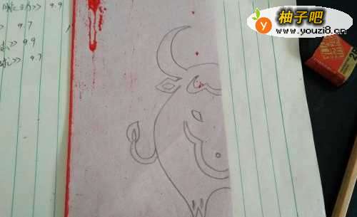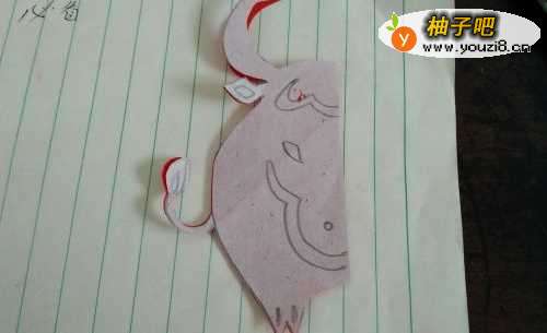 3然后再折好的纸上画上一头牛的半边身子,如图。