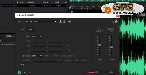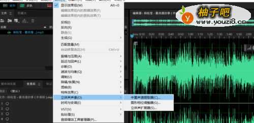3之后点击最上角的菜单-效果-立体声声响-中置声道提取器,之后就进入提取器的界面,进行提取器的选择。