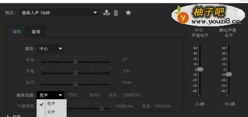 4在提取器上,我们在右上角选项栏里,点击提高人声10db,之后下方的设置会自动进行变化,这个时候你可以点击右下角预播放,看看音乐效果如何