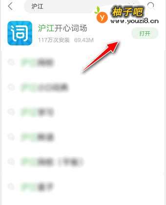 手机应用市场,下载并安装"沪江开心词典"软件。