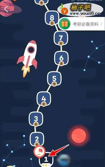 选择需要闯关的级别,对于本词汇词典的新手默认为第1关,点击数字"1"开始闯关游戏。