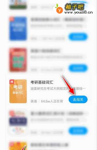 选择"背词"->"考研基础词汇"->"去闯关",会自动加载考研词汇。