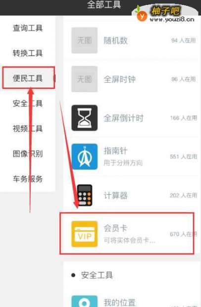 2我们首先打开“百宝精灵”,选择底部的“全部工具”,点击“便民工具”,在右侧找到“会员卡”,点击进去,如果没登录会提示进行登录,登录下即可。