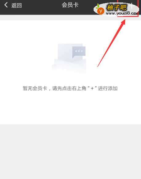 3一开始我们没有加过会员卡的时候,列表是空的,可以点击右上角的“+”号进行添加
