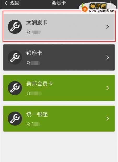 5保存成功后,在我们列表页就可以看到我们添加的会员卡了,我这里加的比较多,当我们要使用会员卡的时候,直接点击对应的会员卡,即可进入到会员卡详情页,比如我们点击大润发的会员卡