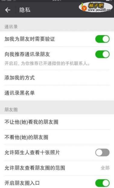 44.在这里的“隐私”页面,我们可以设置自己的隐私,看到这个页面的“允许朋友查看朋友圈的范围”按钮显示的是“全部”说明自己微信的全部说说都是可以给朋友看见的,如下图所示: