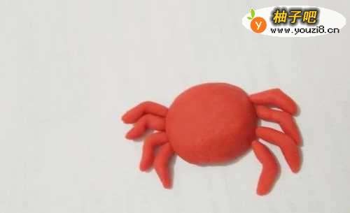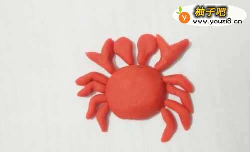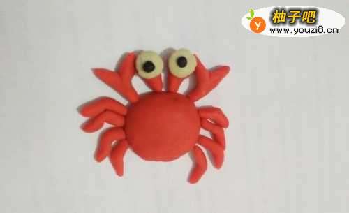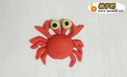 用红色的彩泥捏一只螃蟹,看着就象煮熟了一样。