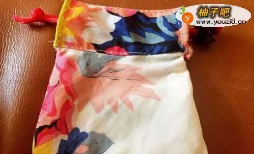 7将绳子穿过领口位置,将绳子一口打个死结,收纳包就做好了。