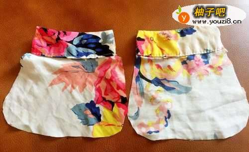 2剪出如图两块衣料。如果没有领口的旧衣服,可以剪出后,自己往内裹缝好即可。