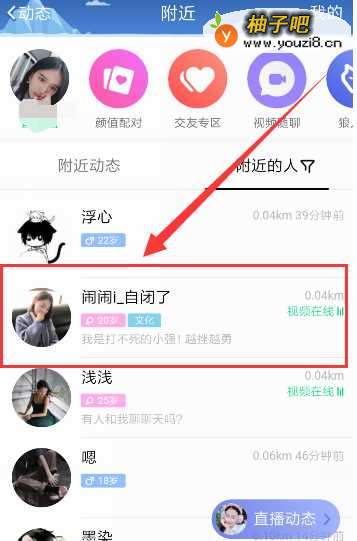 5这时,在附近的人下面就会看到你加的好友,按住不动,如图所示