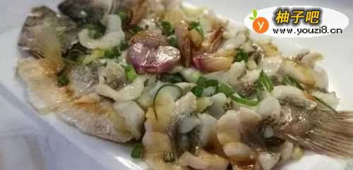 9沿鱼两侧加入适量的蒸鱼豉油。