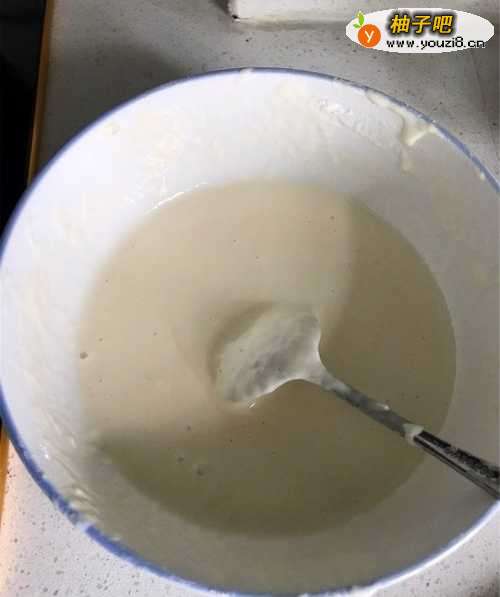 2找出平底锅,锅里不加油,中火烧锅,大概七八十度,把面糊舀进锅里,端着锅左右摇晃成圆形