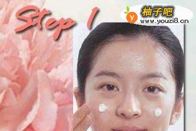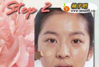 2Step 2 粉底为了让粉底更加的均匀以及服帖,我们最好选择粉底刷来进行涂抹,两侧的脸颊和下巴是涂刷的重点,所以我们要先在这三个地方放上粉底,然后再均匀的涂抹开。