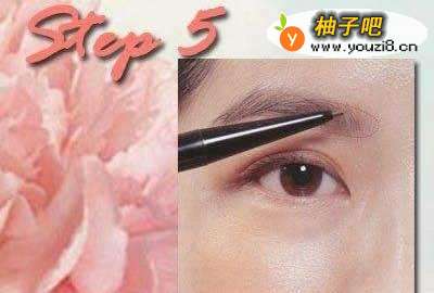 5Step 5 眉妆我们用眉粉笔要现在眉头的位置上轻轻的涂刷上眉粉,这样能够确定整个脸型以及眼睛的协调程度。如果你的两眉之间比较近那么也会拉近眼睛的距离,如果两个眉头比较远,那么也会拉远眼睛的距离,根据自身的特点,如果你两眼眼距较远那么眉头可以画近一些,否则反之。