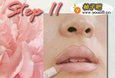 11Step 11 唇妆我们要先用唇线笔把整个唇部的唇形勾勒出来,这样能够把不够饱满的嘴唇借助唇线来弥补。