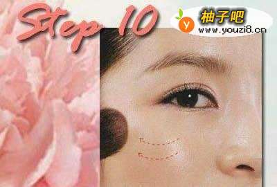 10Step 10 腮红腮红就在自然的苹果肌部位涂刷就能够打造出健康自然红润的效果了。