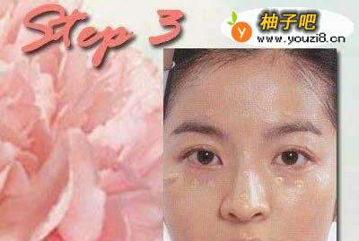3Step 3 遮瑕我们为了让底妆更加的精致,一般我们的粉底都会是非常轻薄的,但这样又会让我们的肌肤瑕疵暴露出来,所以要用遮瑕产品进行修正。特别是黑眼圈等部位。要轻轻的点上我们的产品,然后再慢慢匀展开。
