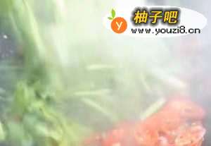 4锅油热后下大蒜子,小米辣,野山椒,中红辣椒碎 ,盐 ,炒香。 下蚝油 ,生抽 ,醪糟 (水酒)鸡精味精 ,芹菜 ,炒香;