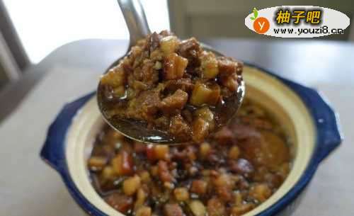 6加些樱花虾爆香,舖在肉燥上一起蒸,也是不错的吃法